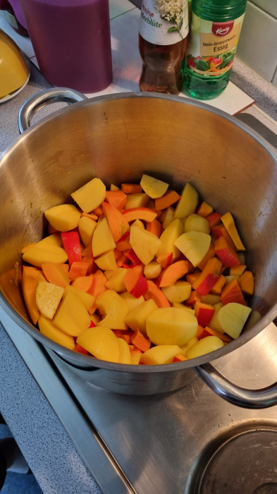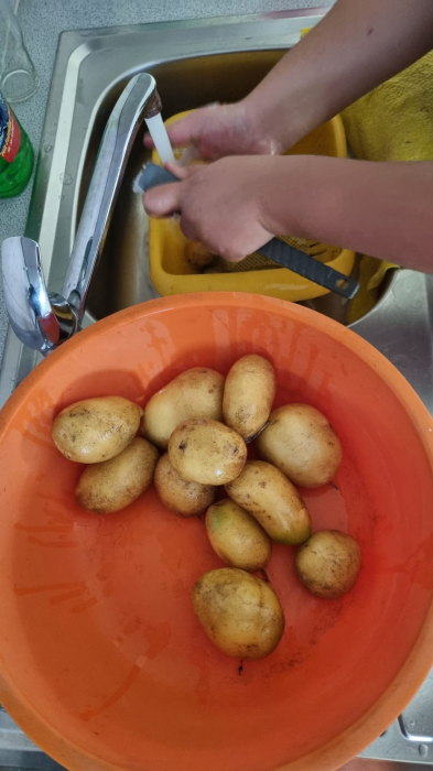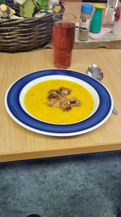 Am nächsten Tag wurden die Kartoffeln und der Kürbis gewaschen und zu einer leckeren Kürbissuppe verarbeitet.