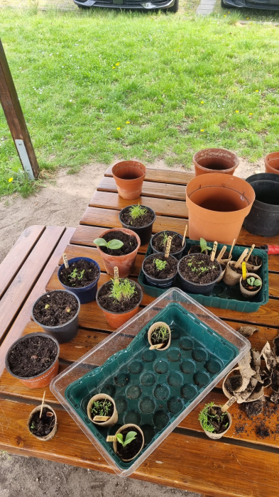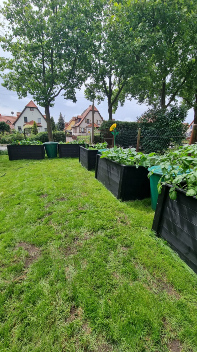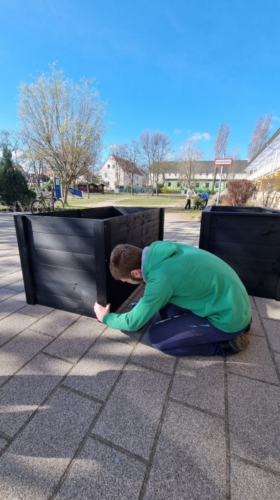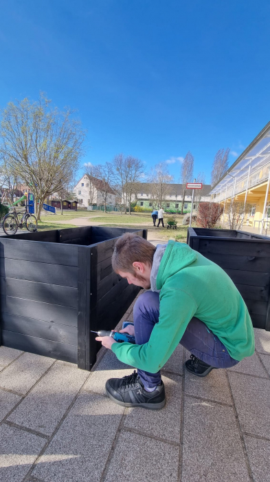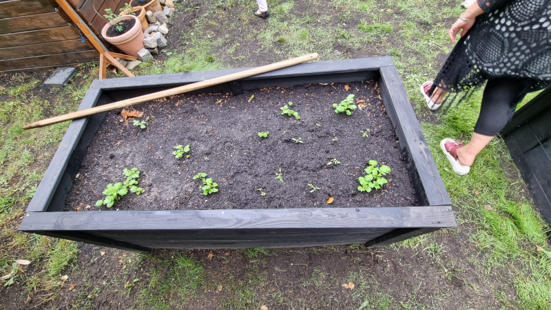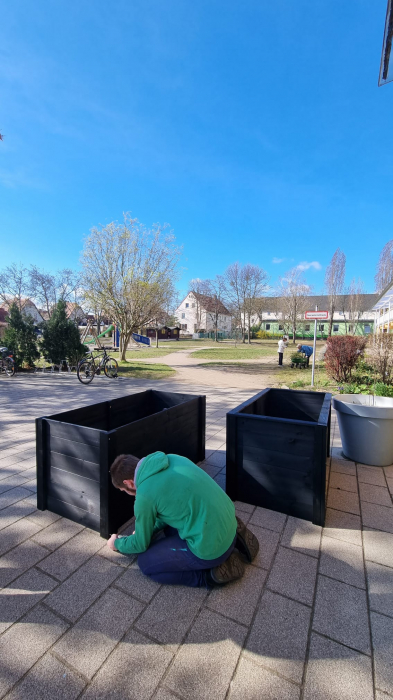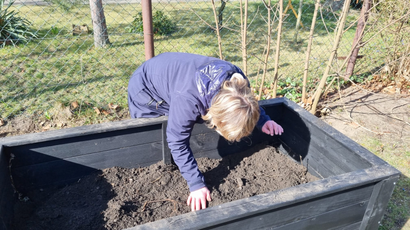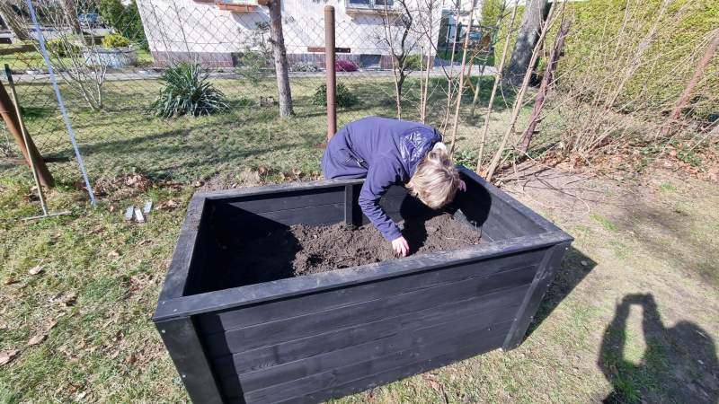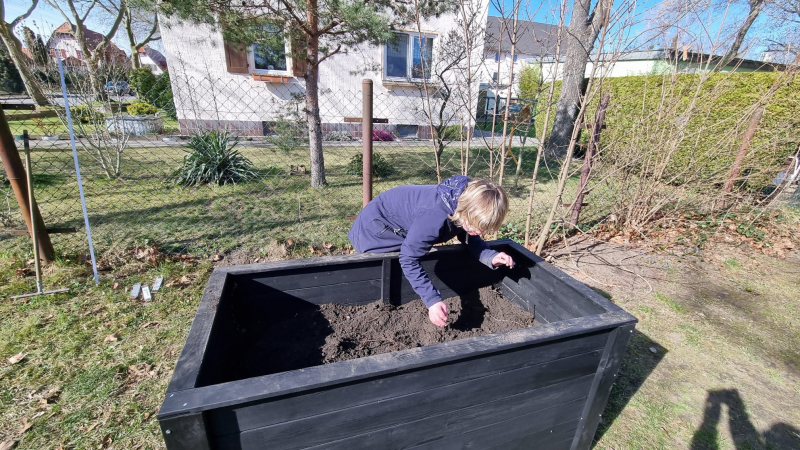 Nun war es soweit. Die Hochbeete wurden aufgestellt und befüllt. Wir starteten ganz unten: